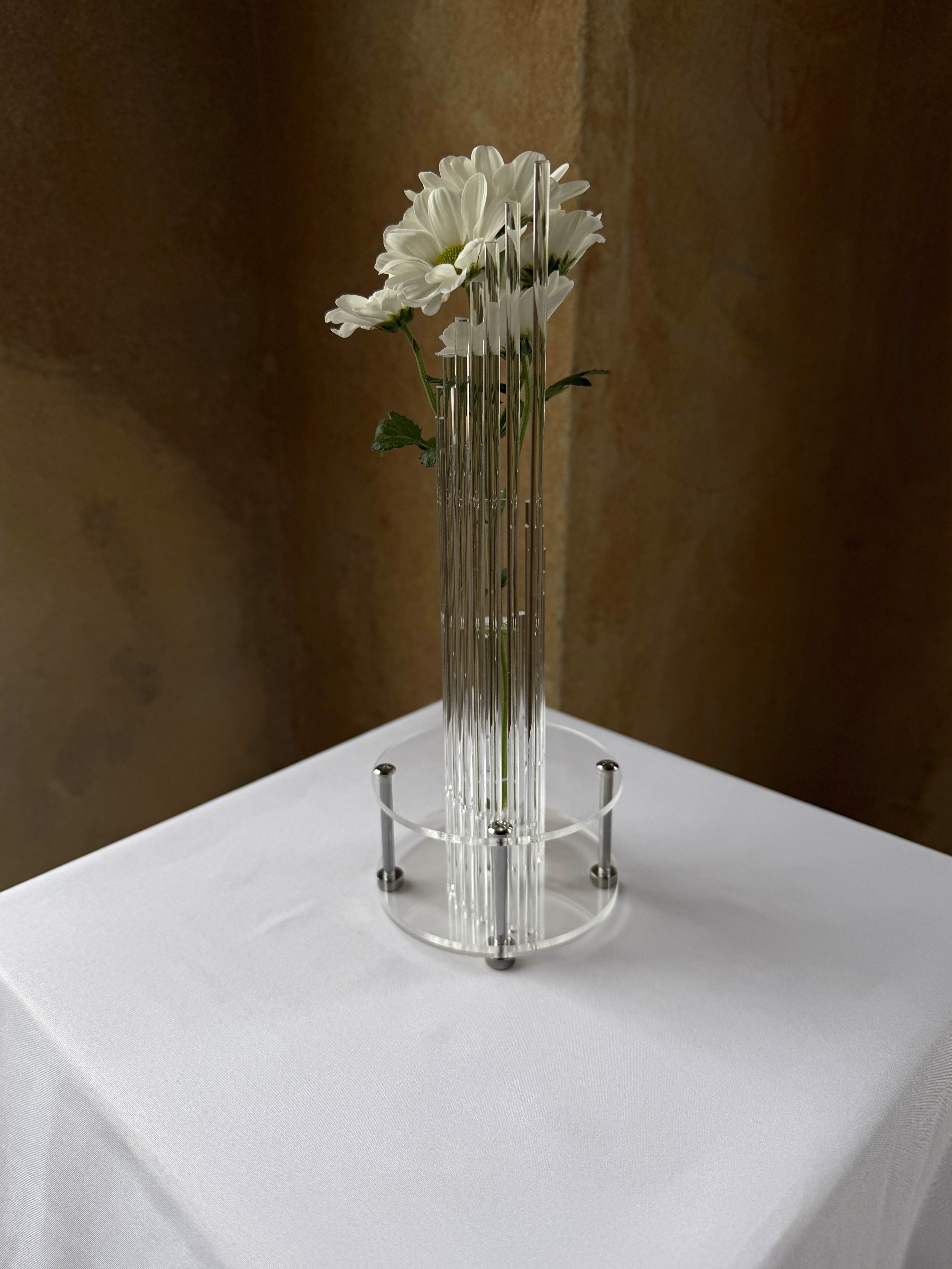 棒を差し替えることで新たな形状へと変化するフラワーベース。