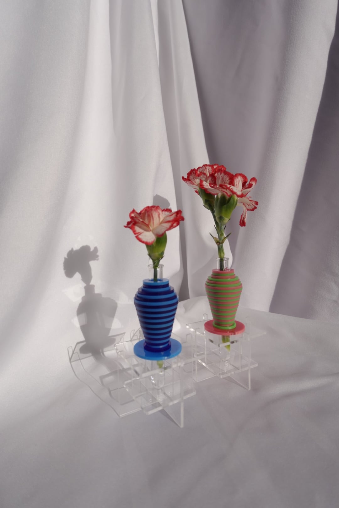 異なる大きさの円を重ねることで、横から見た時に壺のシルエットになるフラワーベース。